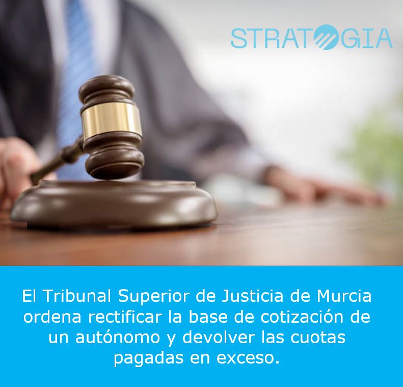 El Tribunal Superior de Justicia de Murcia ordena rectificar la base de cotización de un autónomo y devolver las cuotas pagadas en exceso.